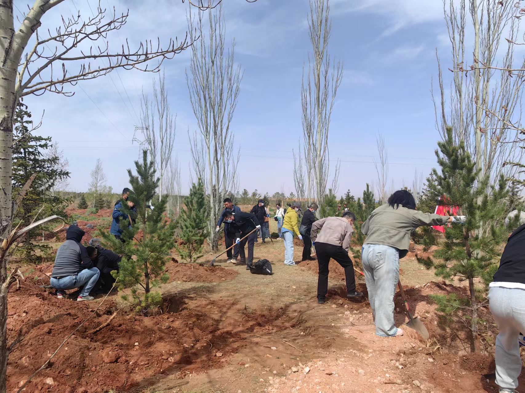 植树现场气氛热烈,干部职工干劲十足、分工有序、齐心协力,用心、用情、用力栽下一株株树苗,深刻体会到首府扩绿、兴绿、护绿的责任重大,体会到筑牢北疆重要生态安全稳定屏障的重大意义。