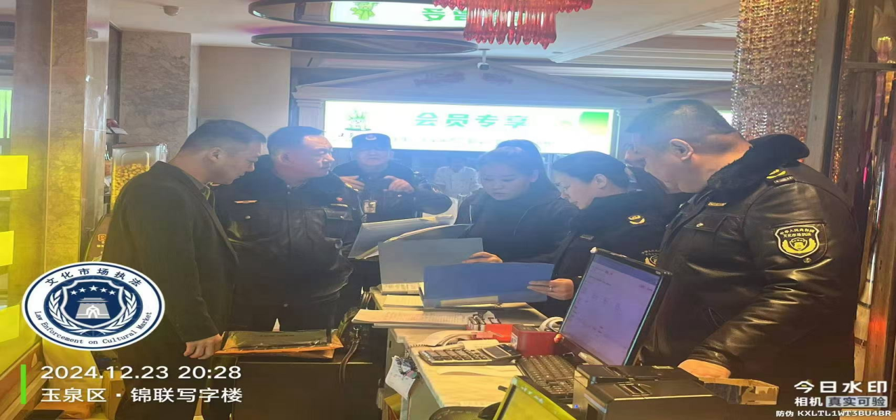 正值岁末年初,为确保此期间文化市场经营场所规范有序经营,营造文明、健康的文化市场环境,针对近期歌舞娱乐、营业性演出市场火热的特点,12月23日、24日夜间,市文化市场综合行政执法局对文化娱乐场所开展集中夜查行动。