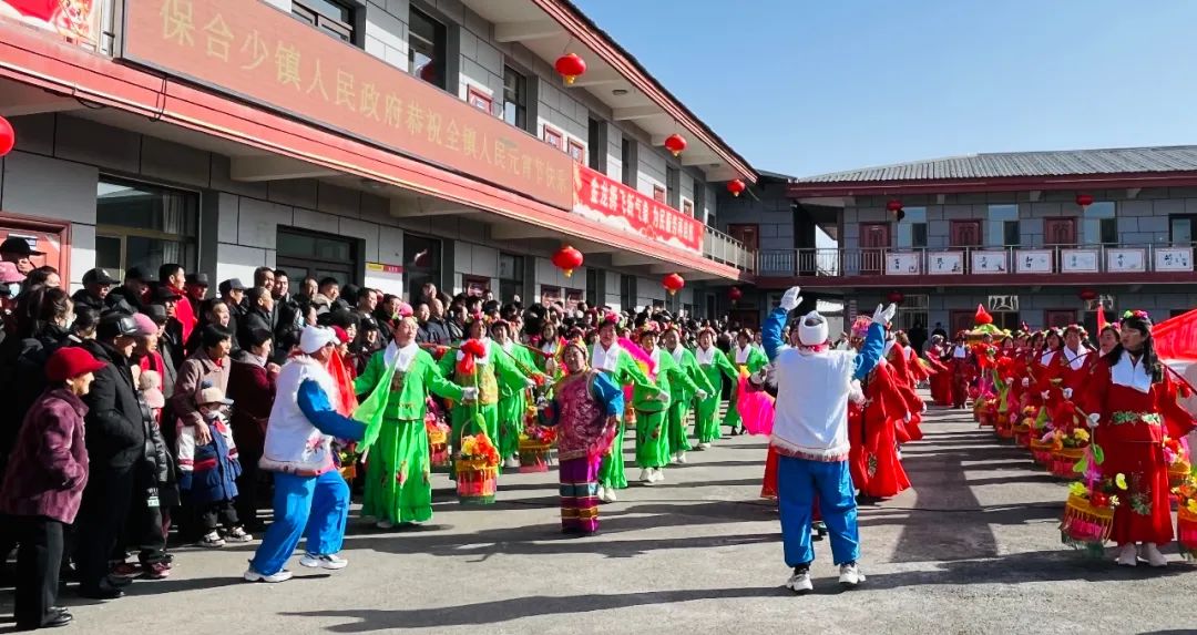 锣鼓喧天、龙腾狮舞,气势壮阔的开场表演瞬间点燃了观众们的热情。社火队员身着盛装,精神抖擞、神采飞扬,脚踩铿锵有力的鼓点,手舞艳丽的彩扇,尽情扭动欢快喜庆的秧歌舞步。据保合少镇人民政府相关工作人员介绍,这次共有9个村的9支队伍参与社火表演,社火是非物质文化遗产项目之一,是一种传统的民间表演形式,不少市民游客慕名而来,在保合少镇感受民俗文化、体验红火年味儿。
