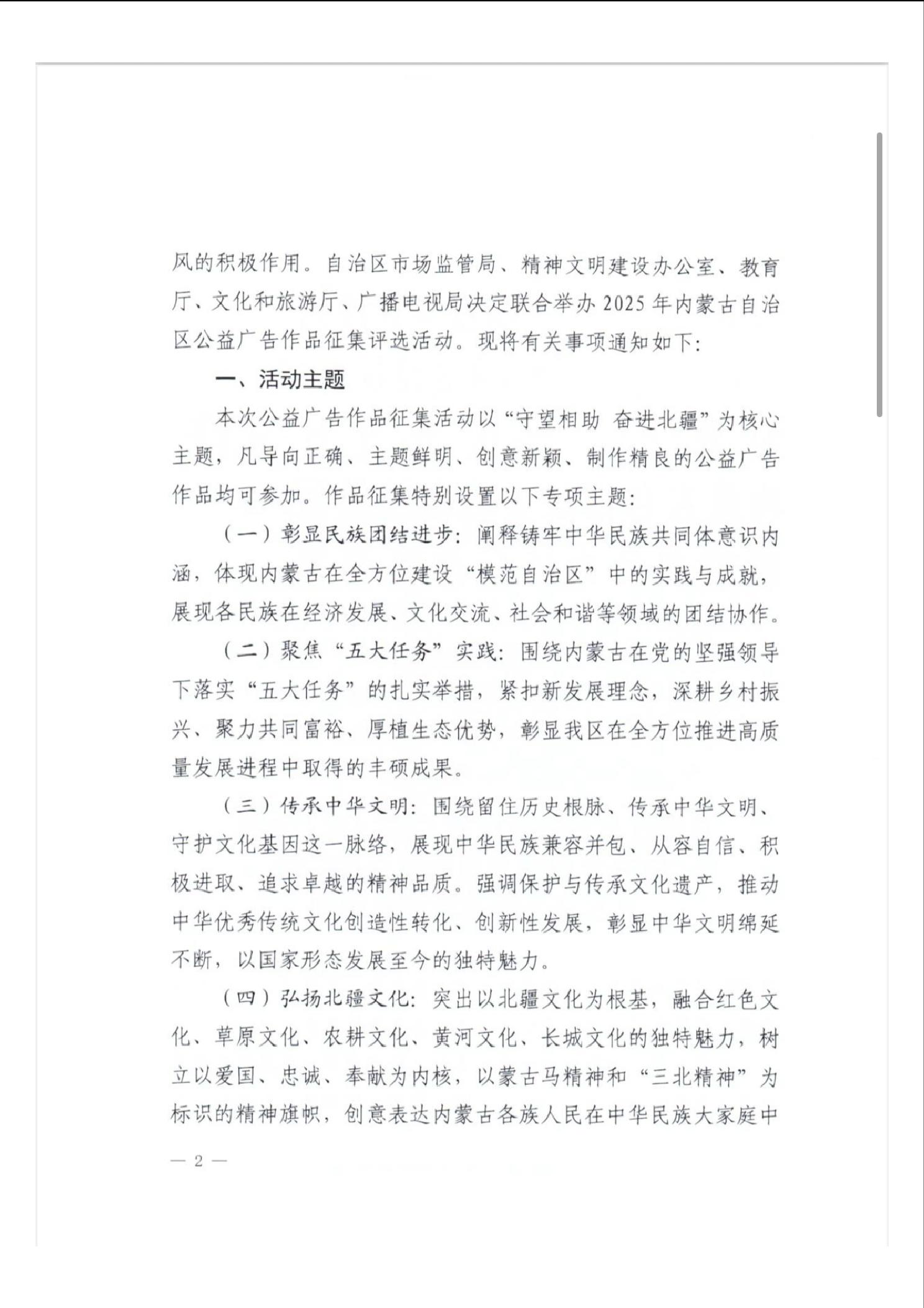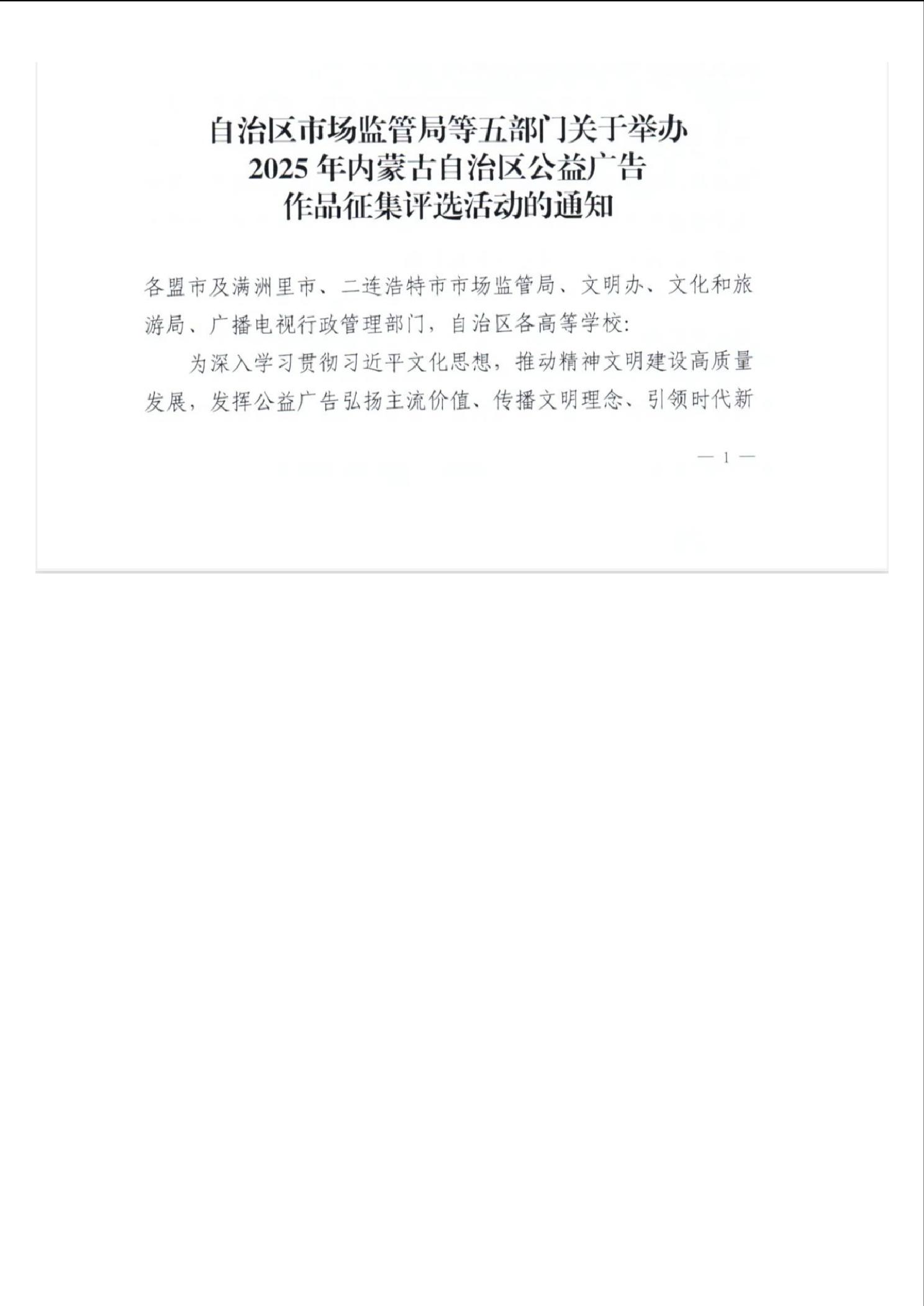 自治区市场监管局等五部门关于举办2025年内蒙古自治区公益广告作品征集评选活动的通知